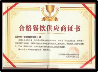 合格餐饮供应商证书